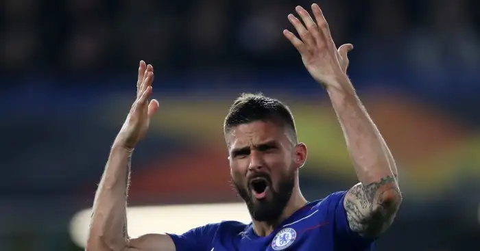 Chelsea's Olivier Giroud reacts during the UEFA Europa League, Semi Final, Second Leg at Stamford Bridge, London. PRESS ASSOCIATION Photo. Picture date: Thursday May 9, 2019. See PA story SOCCER Chelsea. Photo credit should read: Tim Goode/PA Wire