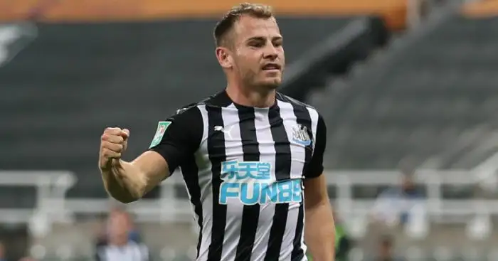 And it was Newcastle who broke the deadlock 10 minutes before the break when Fraser ran on to Miguel Almiron’s fine reverse pass and fired through keeper Thomas Kaminski.