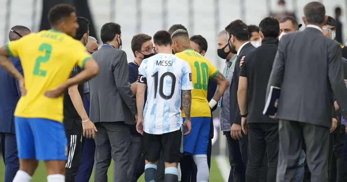 An alleged coronavirus breach by Argentina’s four Premier League-based players resulted in the World Cup qualifier against Brazil in Sao Paulo being called off amid extraordinary scenes as officials stormed on to the pitch.