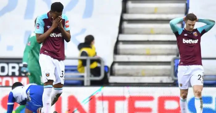 Ten-man West Ham humbled by Wigan in FA Cup shock
